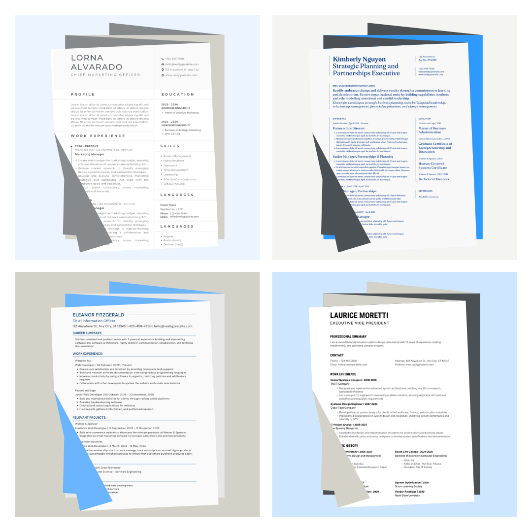 Reviewing resumes from accomplished CEOs, COOs, or CFOs can also help you see how leaders articulate their vision and align achievements with organizational strategy. Focus on how they structure content to show forward-looking value while keeping it readable and relevant to their target audience. The best C-suite examples balance clarity with authority, ensuring they leave a strong impression.
